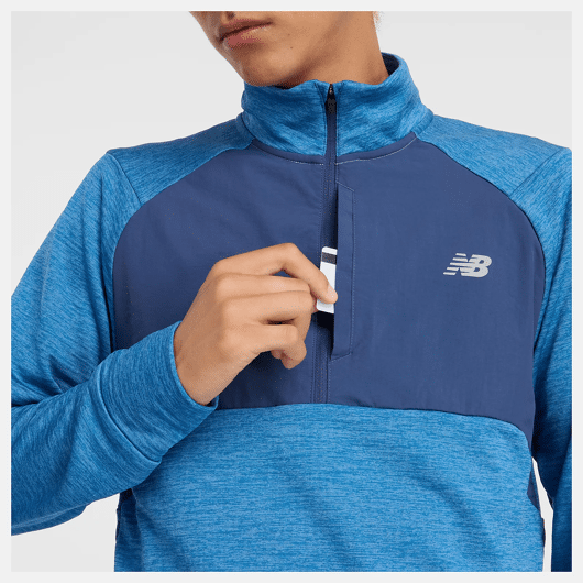 New Balance HEAT technologie houdt je warm bij koudere temperaturen en voert vocht af. Deze baselayer heeft een borstzak met rits voor het veilig opbergen van een sleutel of andere kleine zaken.